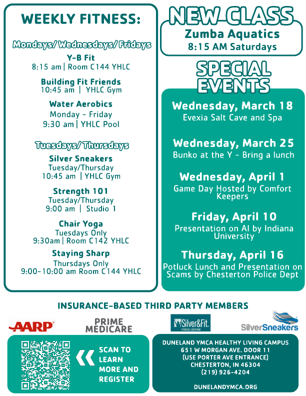 The Duneland Family YMCA has many programs and exercise classes for our older adults and seniors. Our senior programming provides physical, recreational, and educational opportunities to seniors in our community.